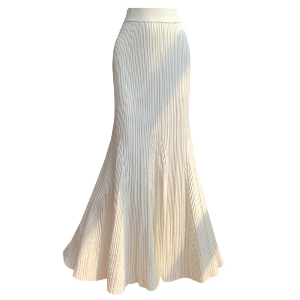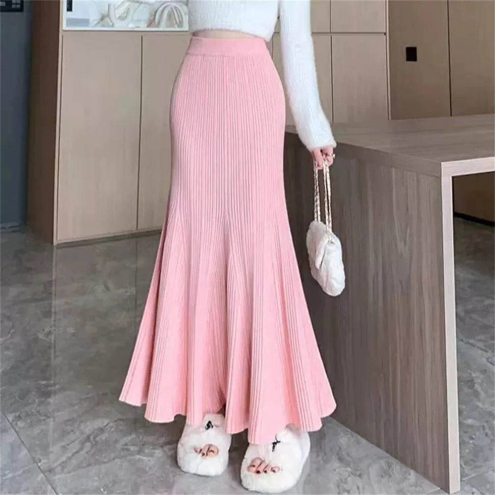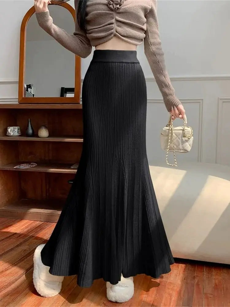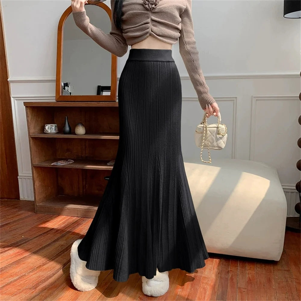 Autumn Winter Knitted Black Long Skirts Women Streetwear Elastic High Waist Clothes Sexy Knitwear Mid Length Fishtail Long Skirt