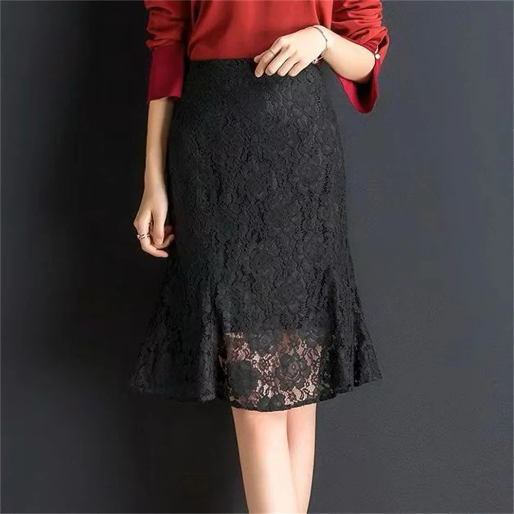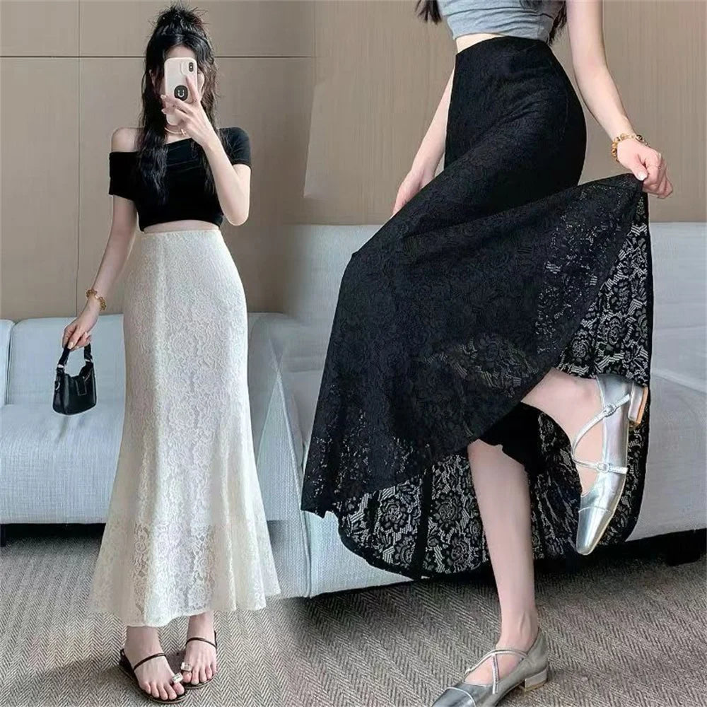 Lace Fishtail Women's Skirt 2025 Spring Summer New Female Mid-Length A-Line Pleated Package Hips Skirt Office Ladies One Step
