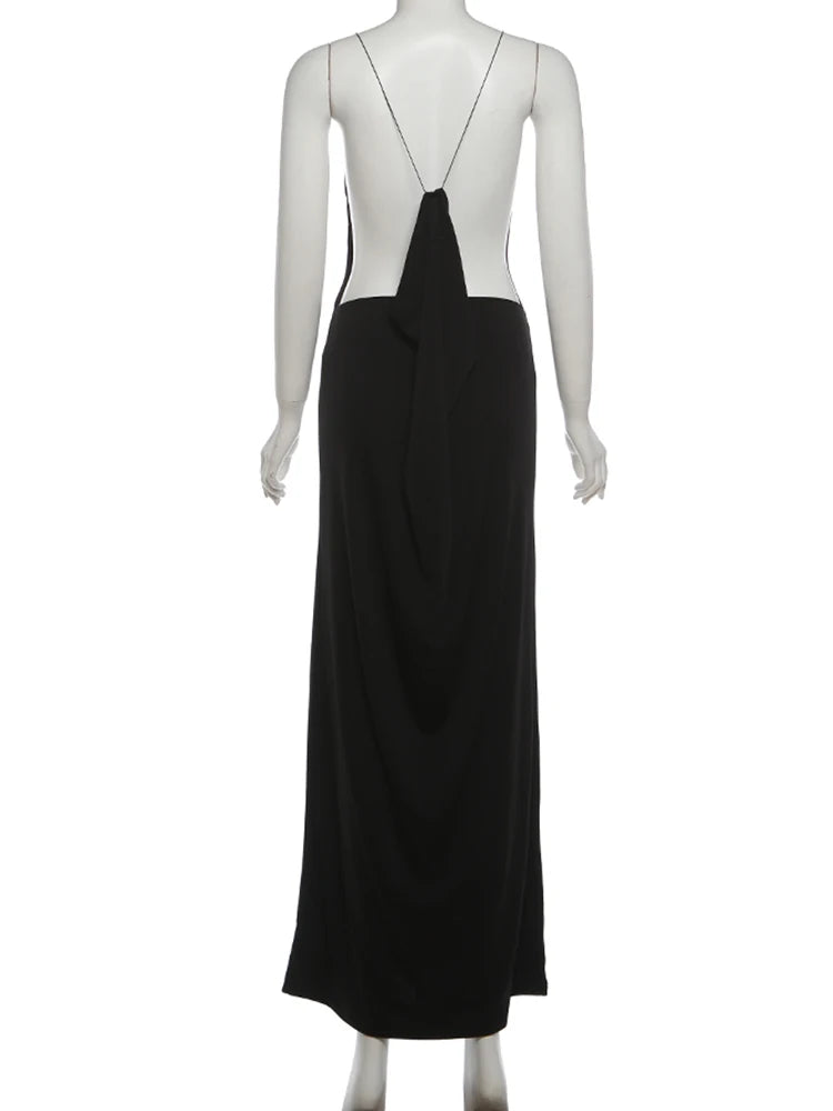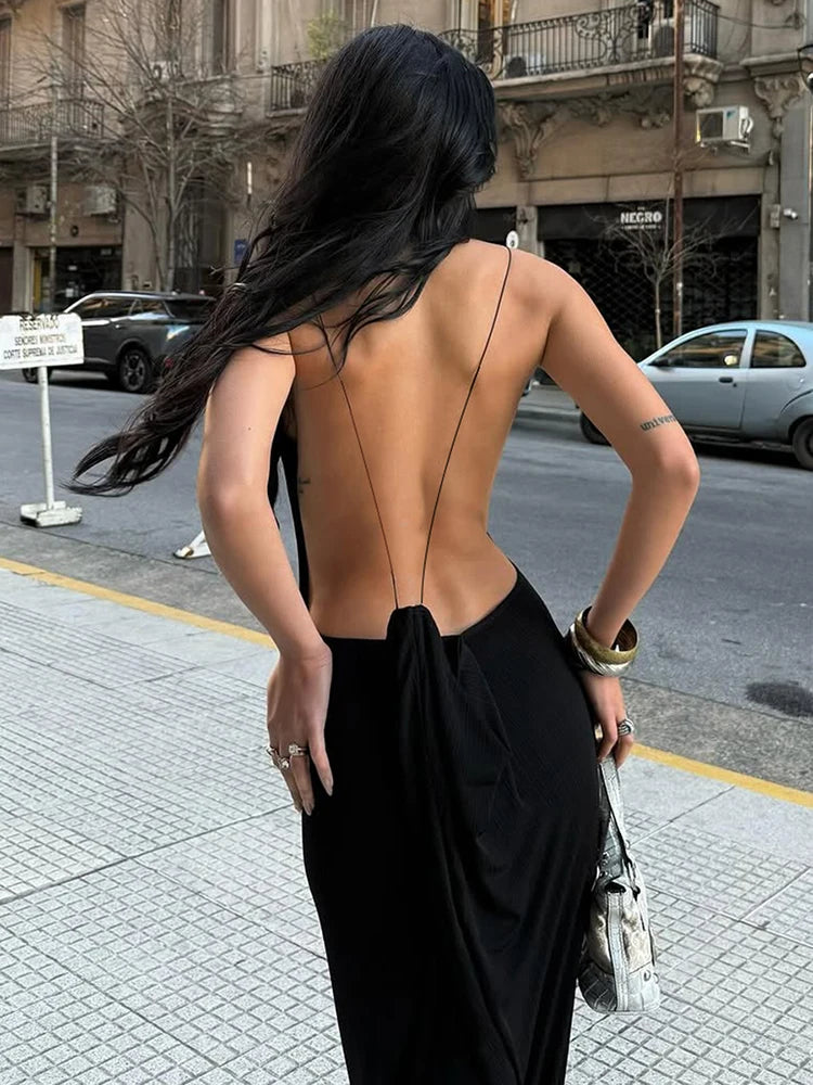 Sisterlinda Sexy Cross Backless Dress Women Trend Metal Cube Sleeveless Low-Neck Coquette Midnight Party Club Stretch Vestidos